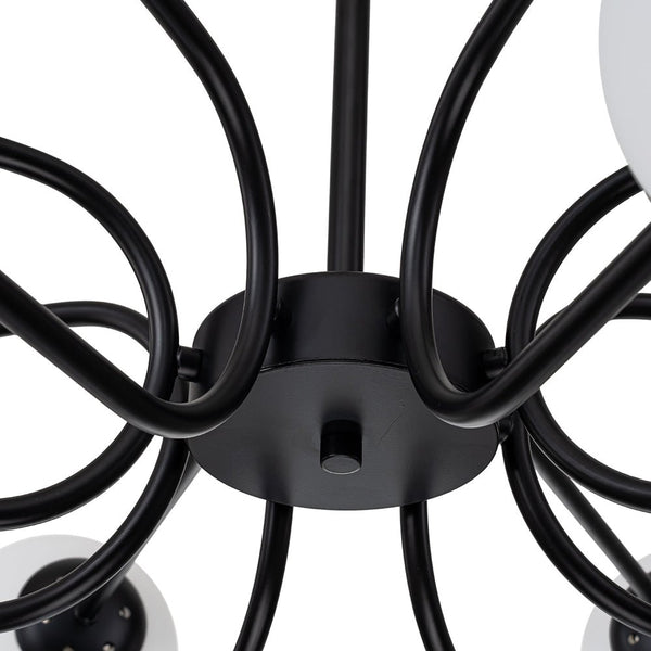 Melds mid-century modern flair and contemporary elegance, creating a stunning focal point for any room with the dazzling allure of the 16-light-tiered frosted glass globe Sputnik chandelier. It features a captivating array of sixteen frosted glass globes, each delicately perched on sleek, radiating curved arms that emanate from a central sphere. The tiered design adds depth and dimension, evoking the timeless beauty of celestial formations. Bathed in a warm yet ambient glow, the frosted glass globes softly diffuse light, creating an inviting atmosphere perfect for dining rooms, bedrooms, living areas, or grand entryways.