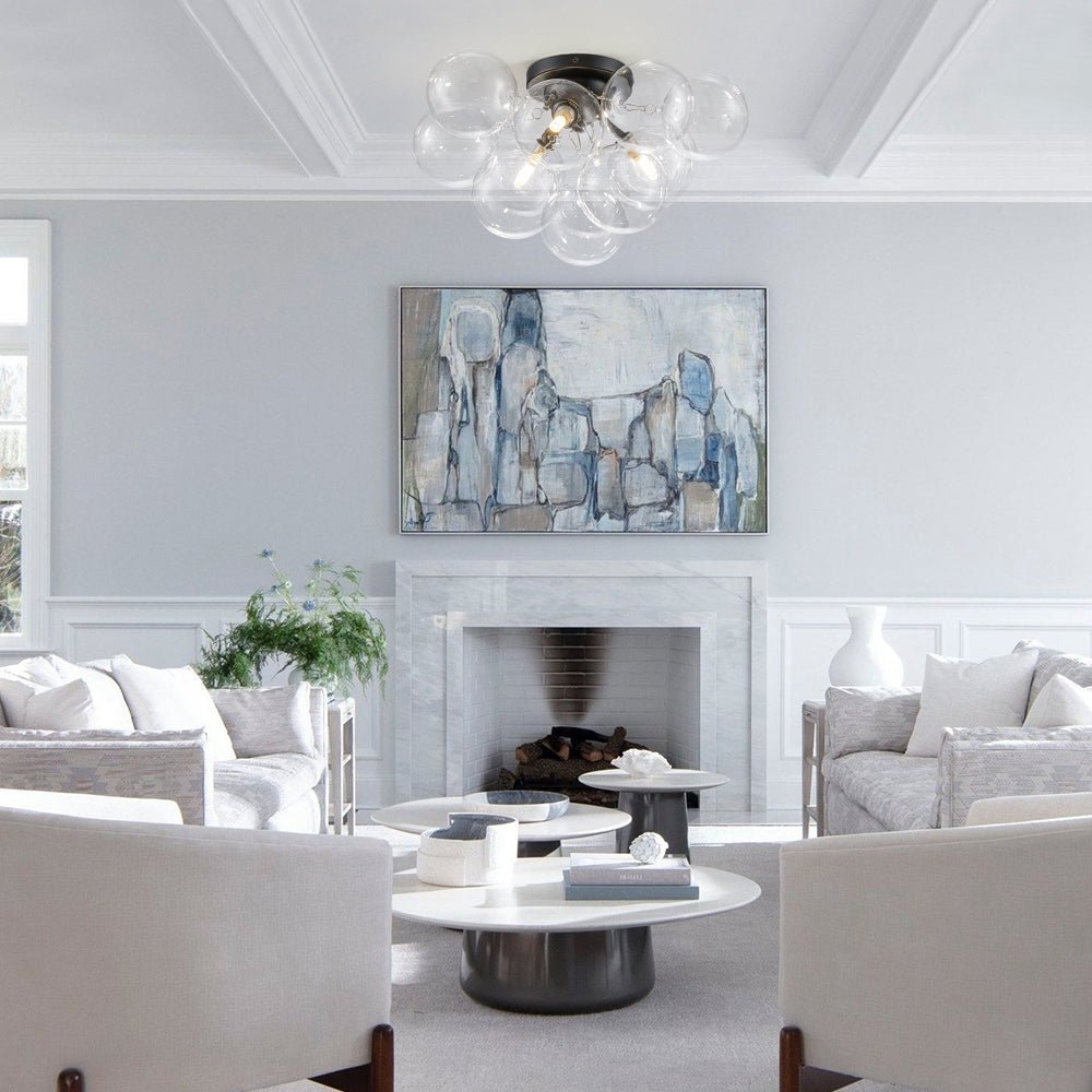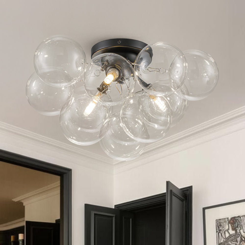 Strikingly turn any space into a haven of sophistication with this exquisite modern 3-light semi-flush mount bubble chandelier! Boasting three lights and a stylish sputnik silhouette this semi-flush mount bubble chandelier is adorned with hand-blown glass bubbles arranged with artful precision, evoking the graceful presence of billowing clouds. The unique soap bubbles look bring a modern yet stylish elegance to any room. Pair it with a dimmer kit (not included), and this stunning semi-flush mount fixture exudes unforgettable ambiance and brightness for any interior with a touch of personality, including your living room, bedroom, dining room, entryway, or foyer!