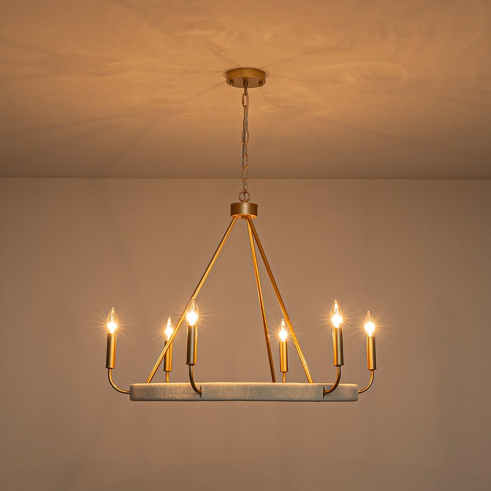 Modern Rustic 6-Light Candlestick Cotton thread Wagon Wheel Chandelier
