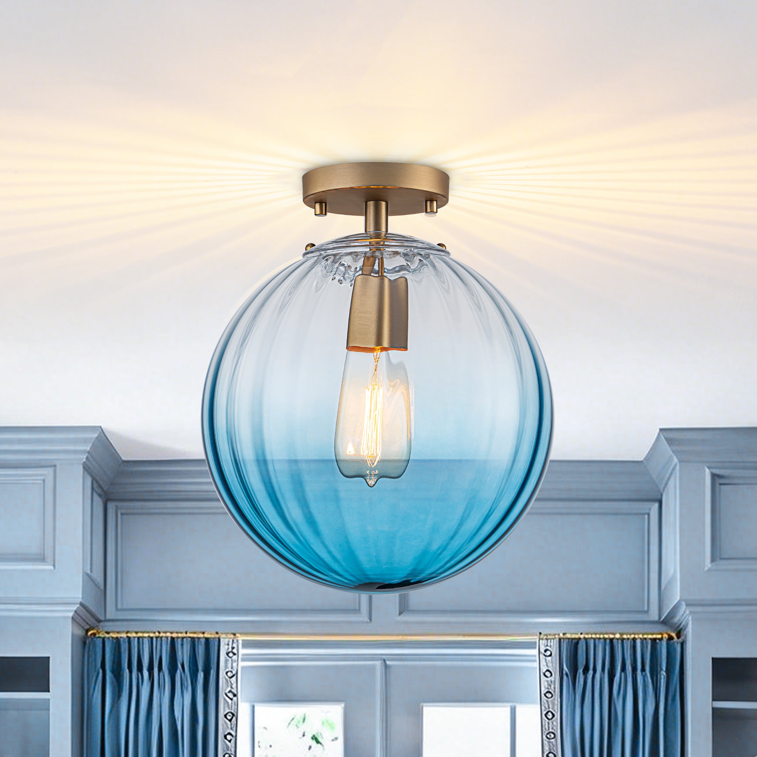 Minimalism 1-Light Striped Glass Orb Semi-flush Mount