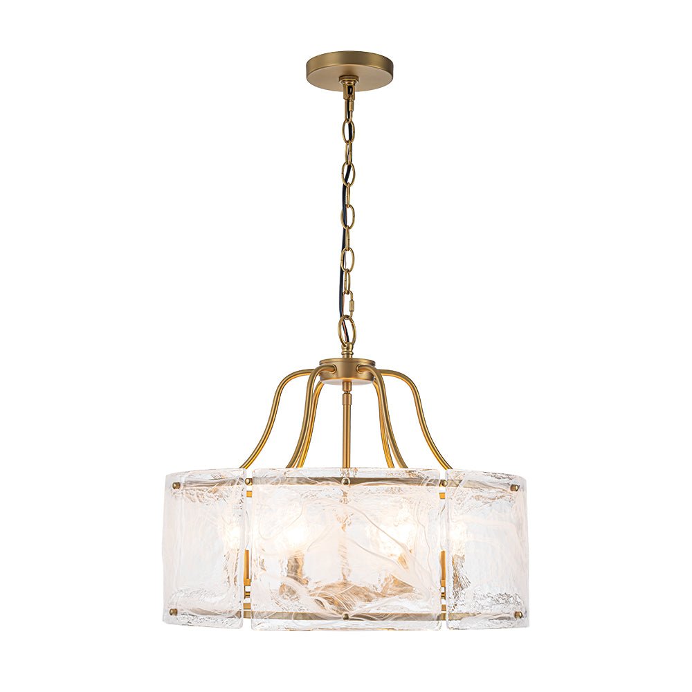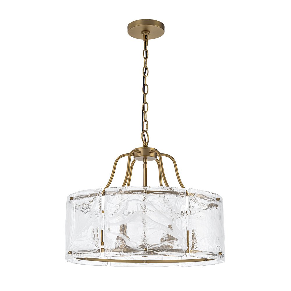 Modern Brass 6-Light Rippled Glass Drum Pendant