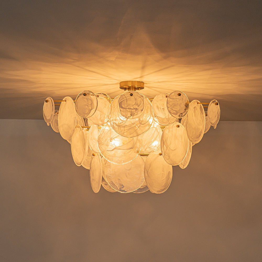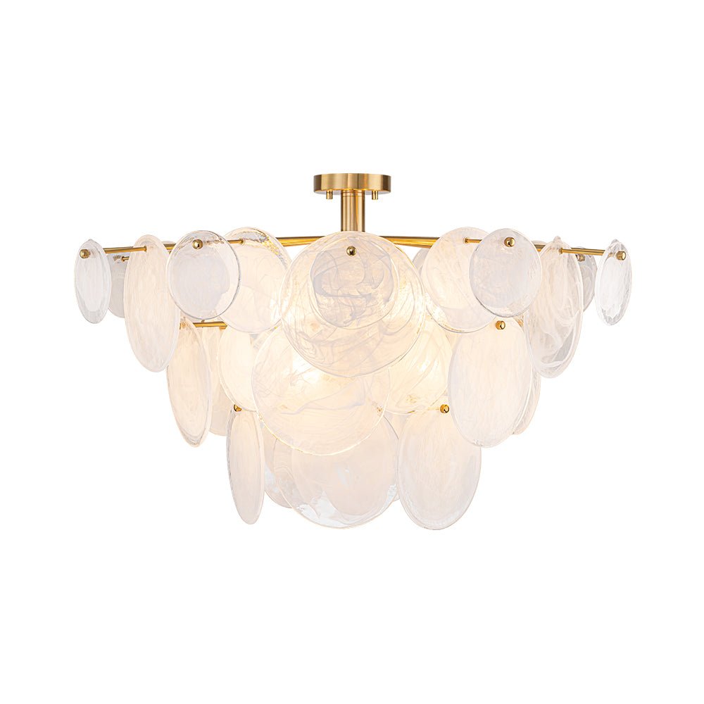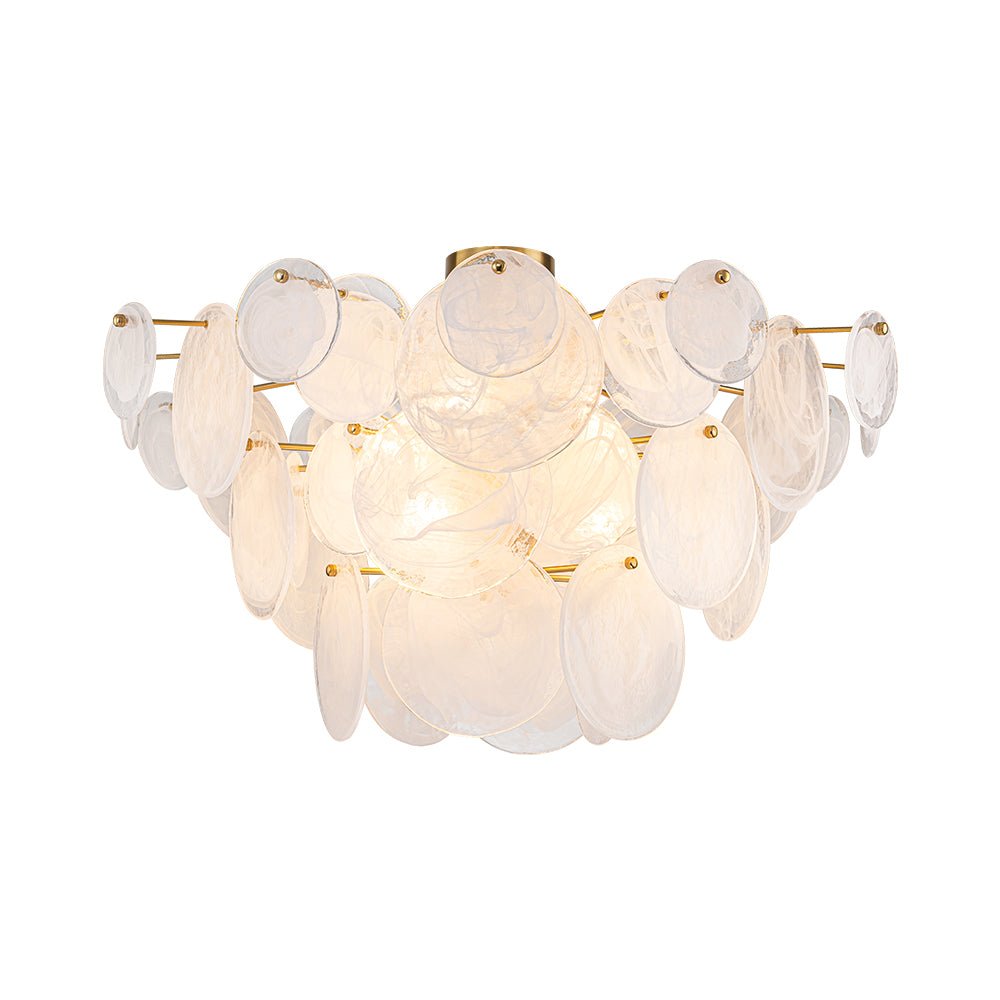 Modern White Strie Glass Tiered Semi-Flush Mount