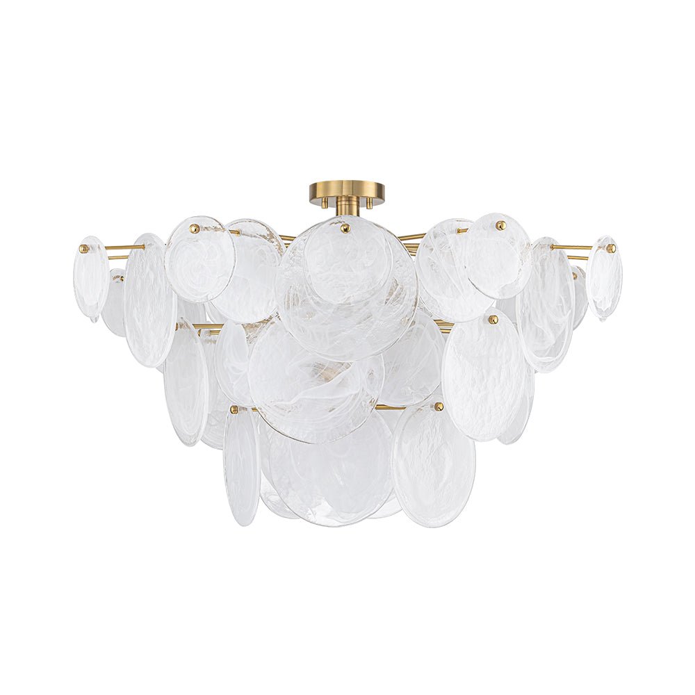 Tiered Design • Semi-Flush Mount • 4 or 9-Light Socket • Brushed Brass Finish • Metal Base • Assembly Required