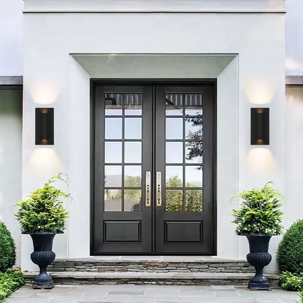 Minimalist yet, modern, this dimmable LED outdoor wall sconce features a sleek rectangular tube silhouette and functional up-down light emission. Crafted as a weatherproof exterior fixture, it casts a balanced, warm glow to elevate porches, patios, garages, courtyards, and gardens with understated elegance. Beyond outdoor use, it seamlessly fits halls, bars, cafes, staircases, hotels, terraces, outside entrances, and corners, ideal for contemporary, industrial, and transitional interior and exterior styles alike..