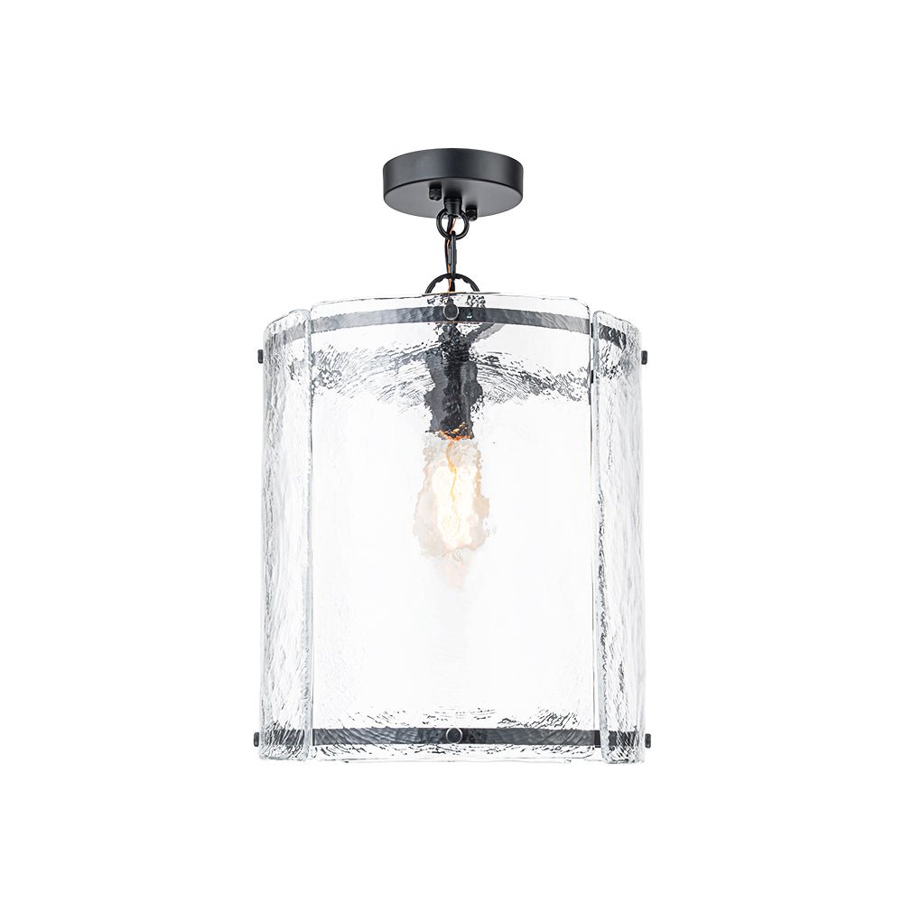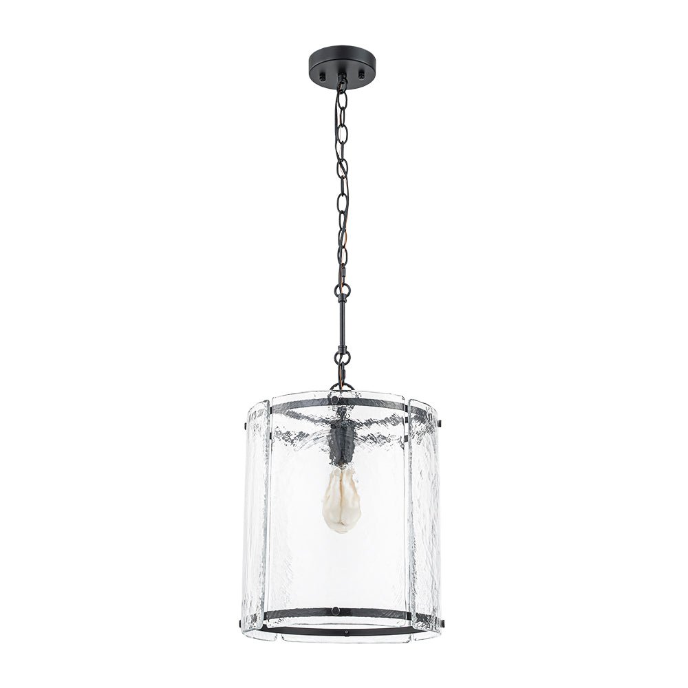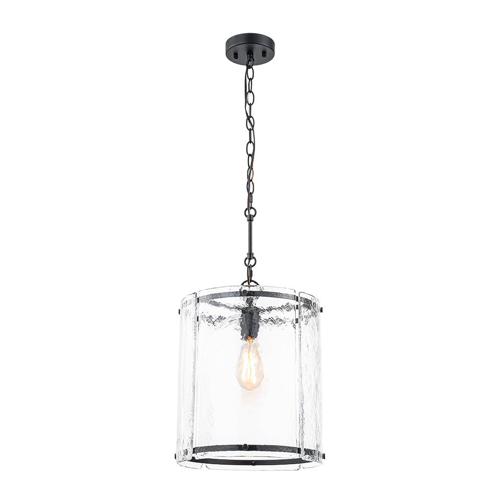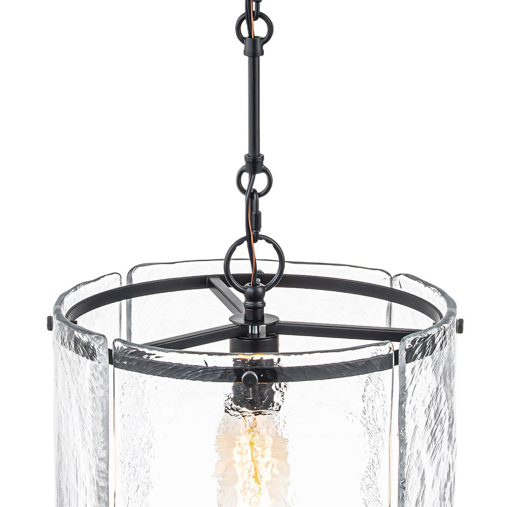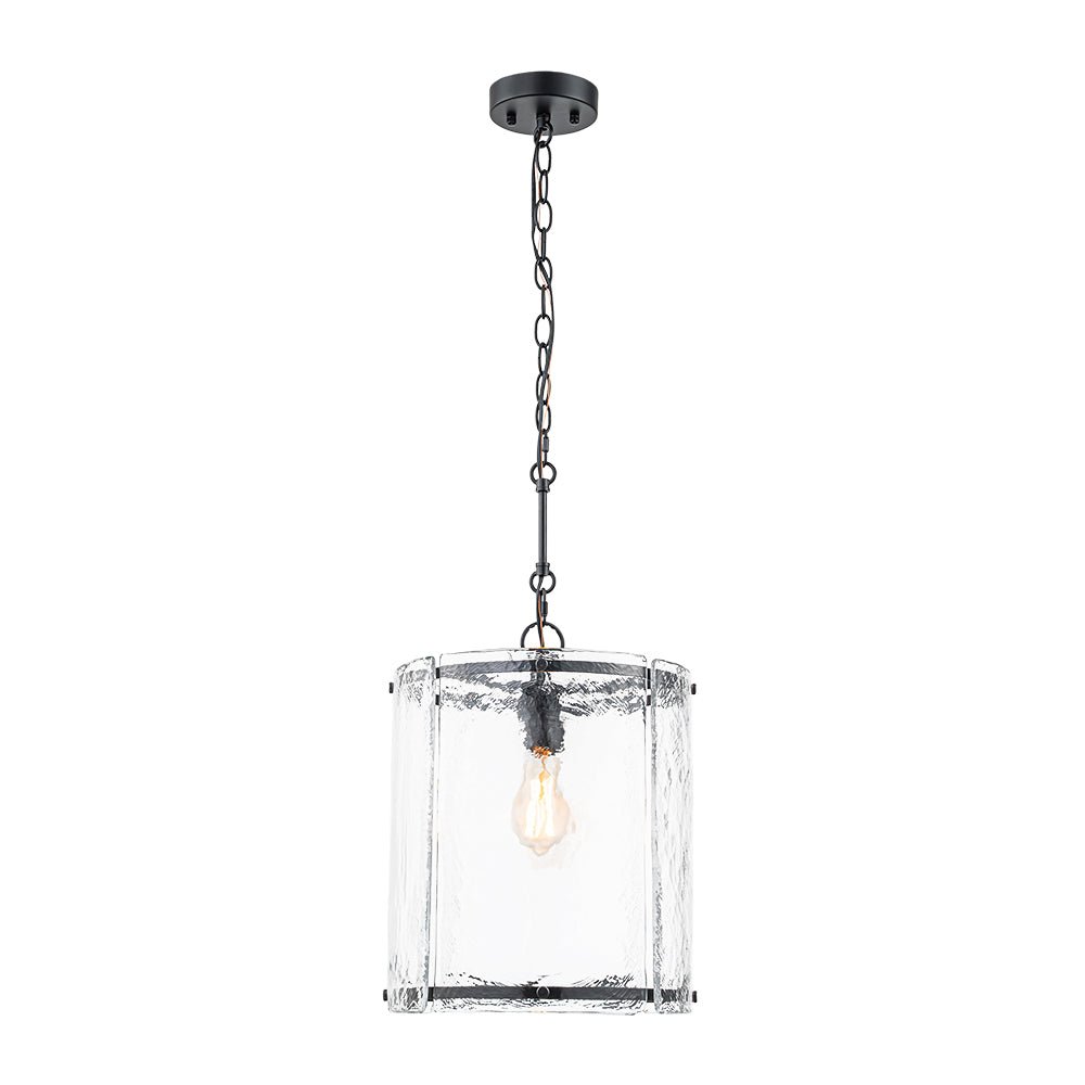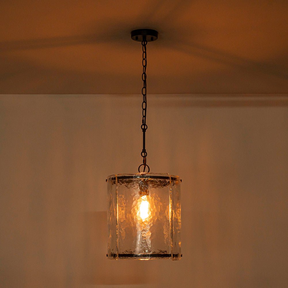 Modern 1-Light Water Rippled Glass Cylinder Single Pendant