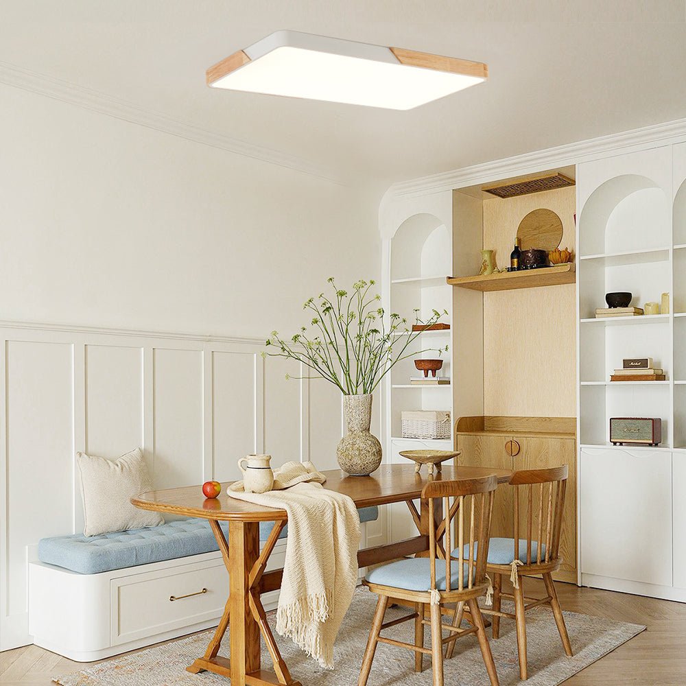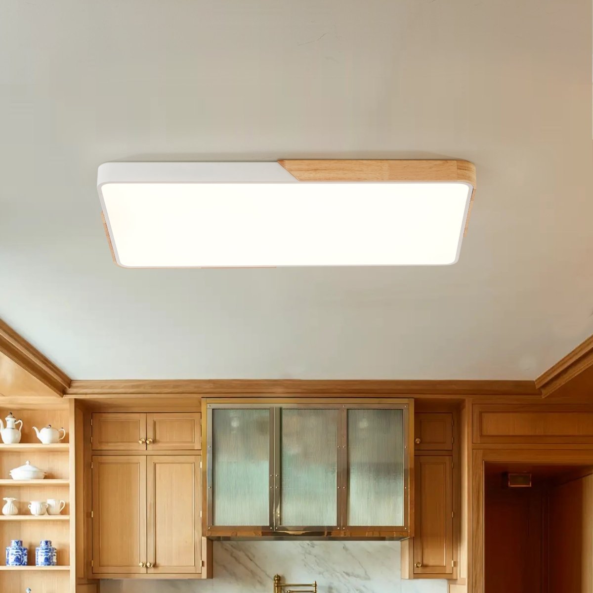 Nordic-style Wood Trim Dimmable Rectangular Led Flush Mount
