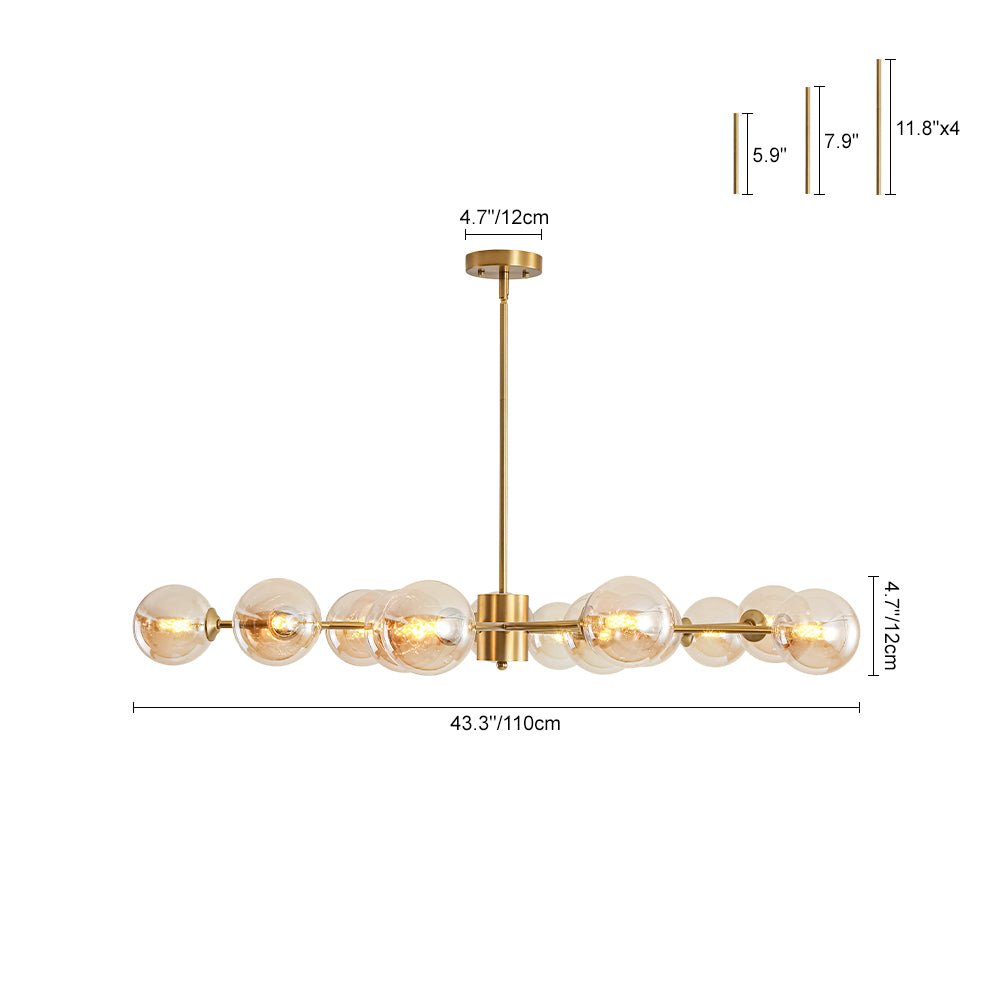 Sprial Silhouette • Amber Glass Globes • Dimmable • 15-Light Design • Brass Finish • Assembly Required