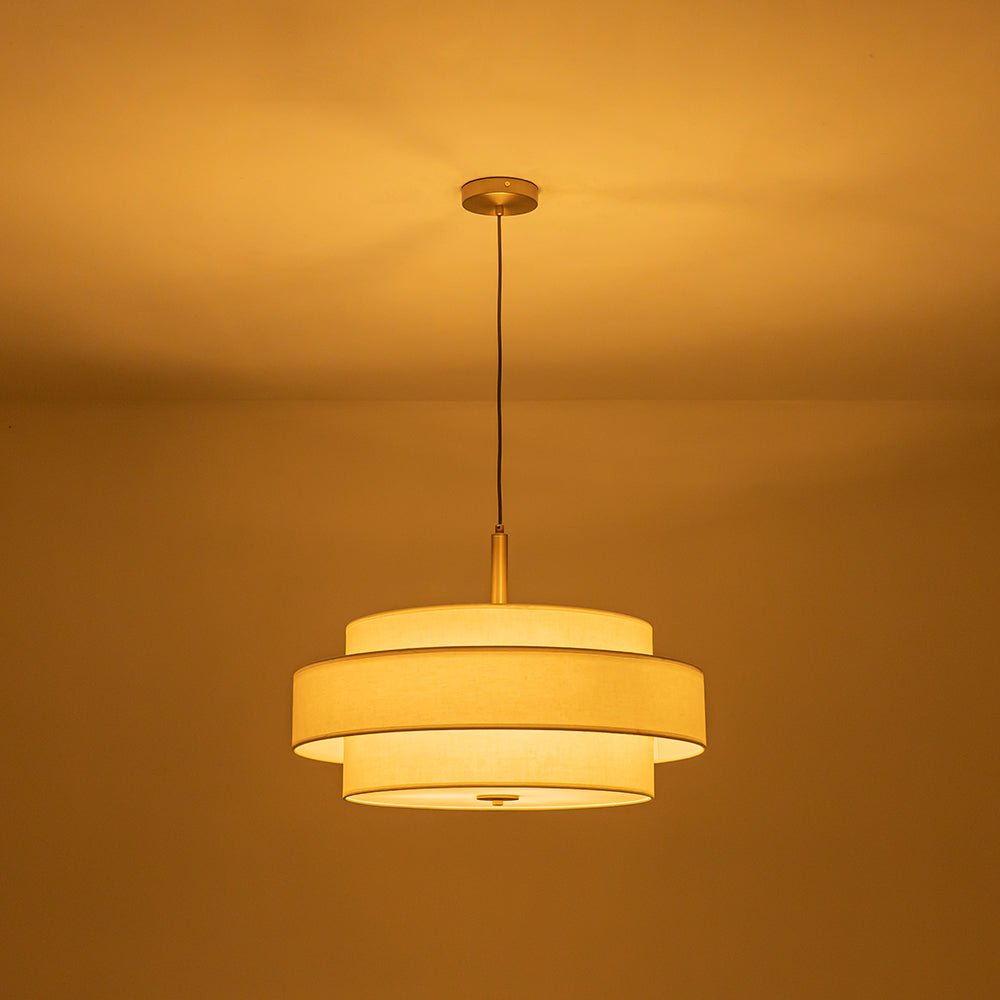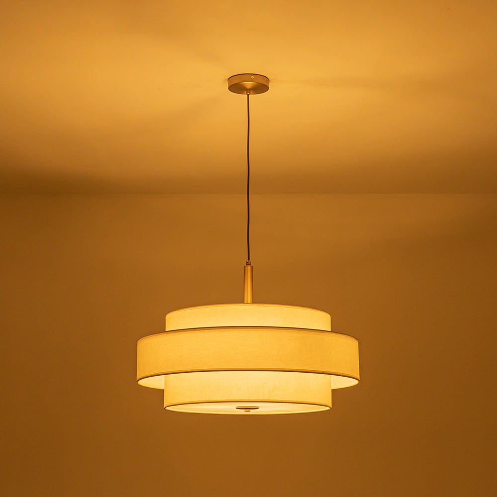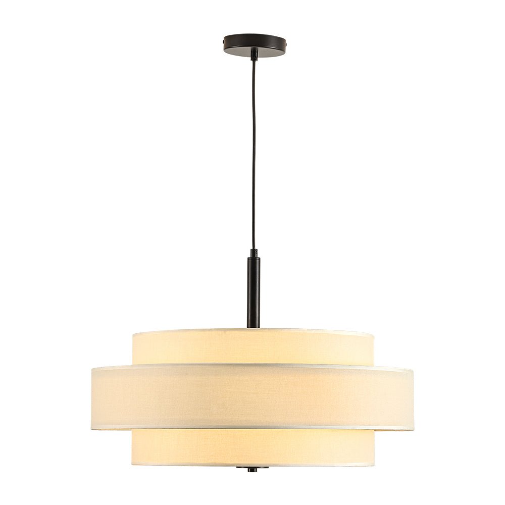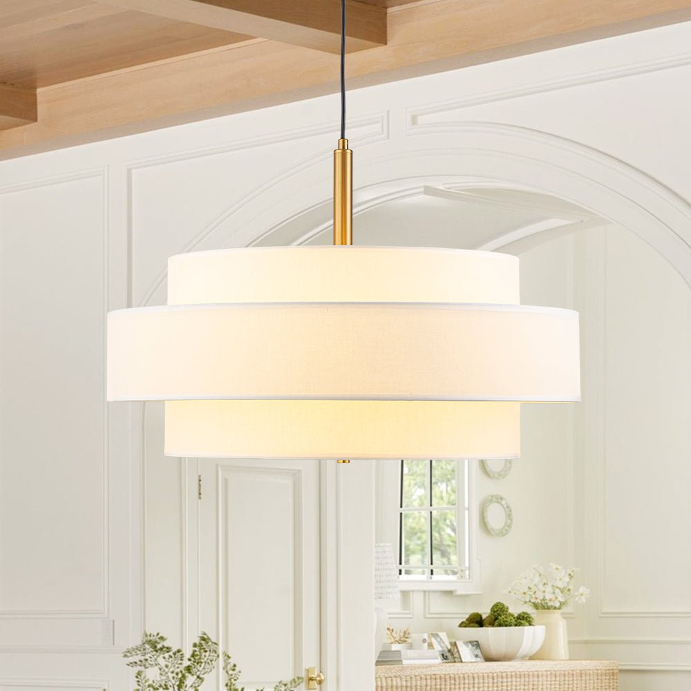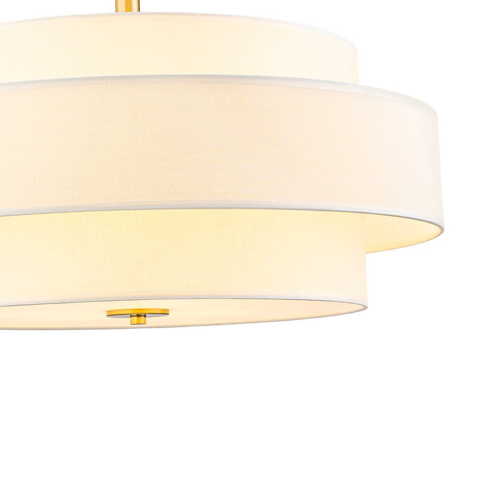 3-Light Round Layered Drum White Linen Pendant Chandelier