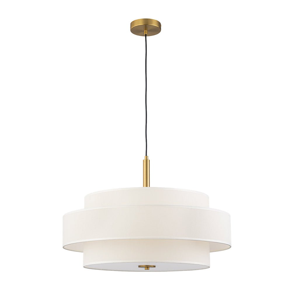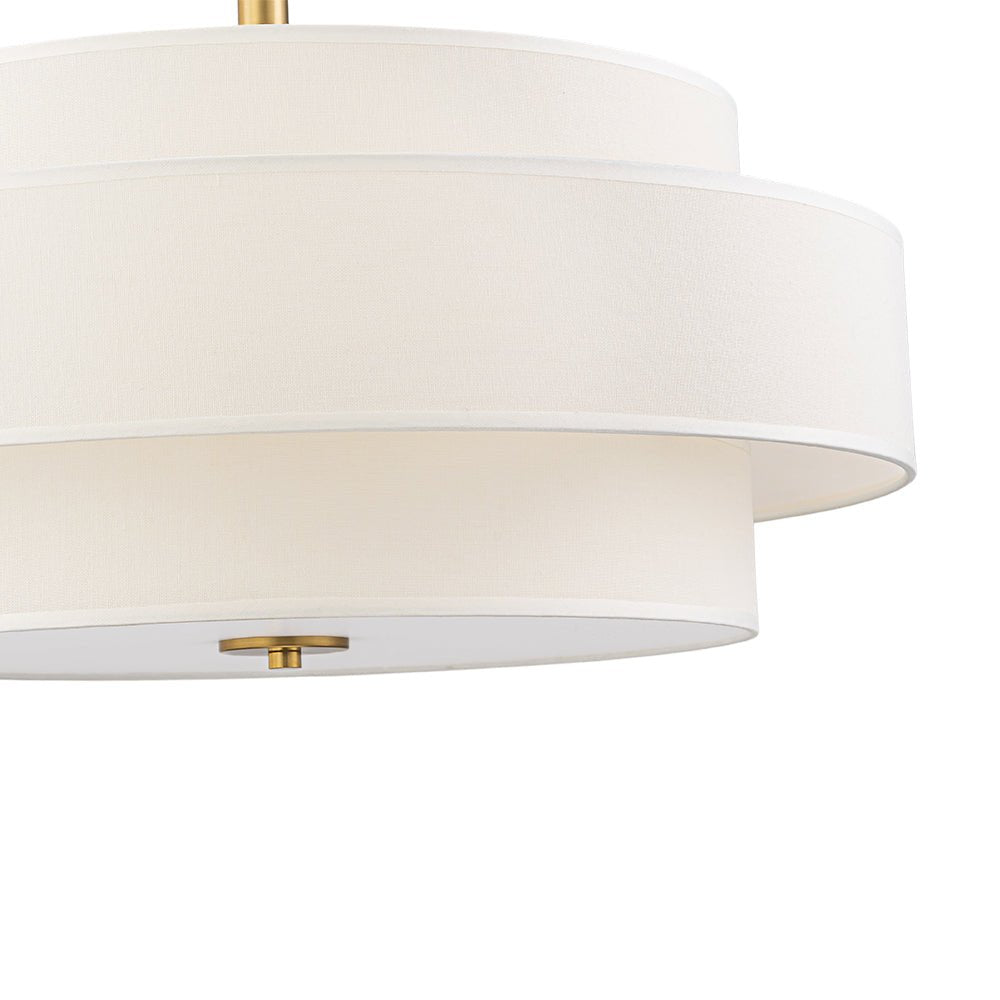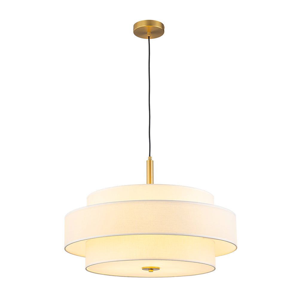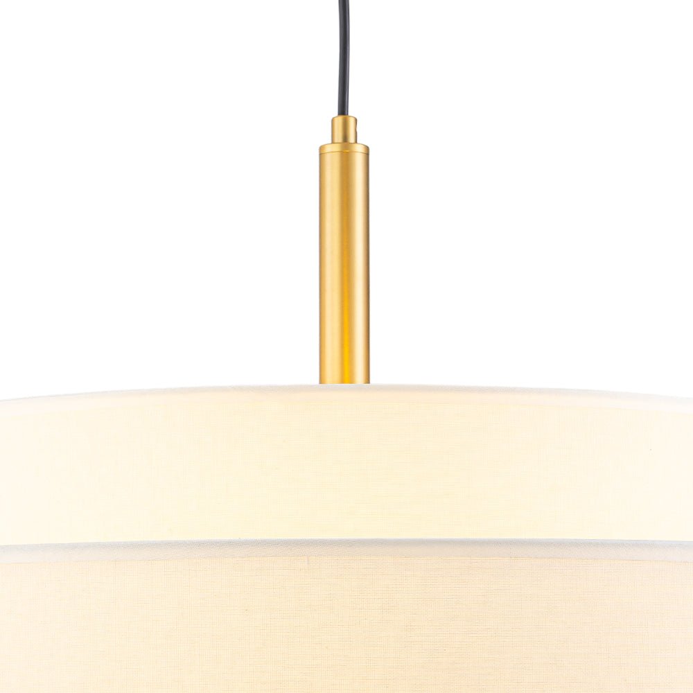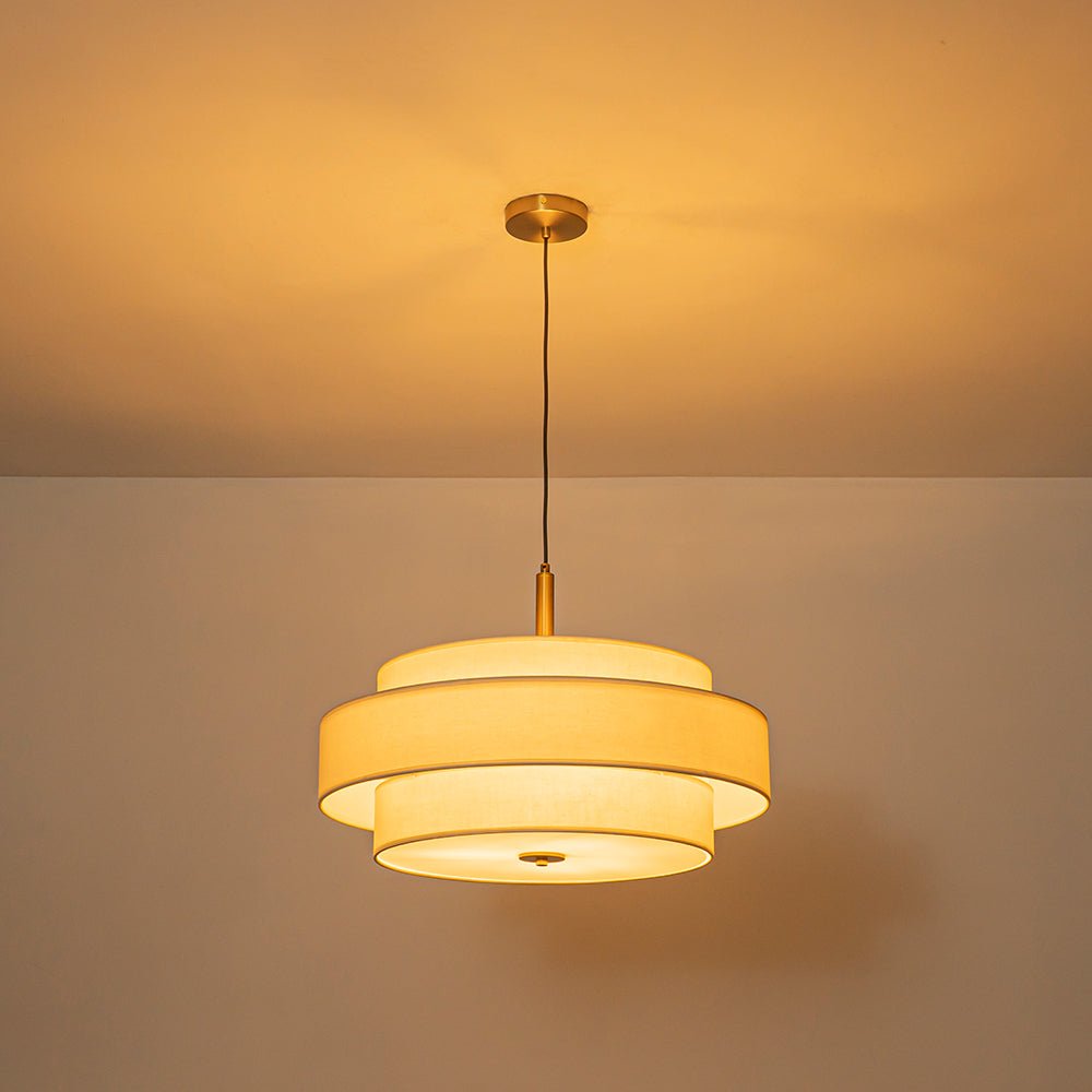 3-Light Round Layered Drum White Linen Pendant Chandelier