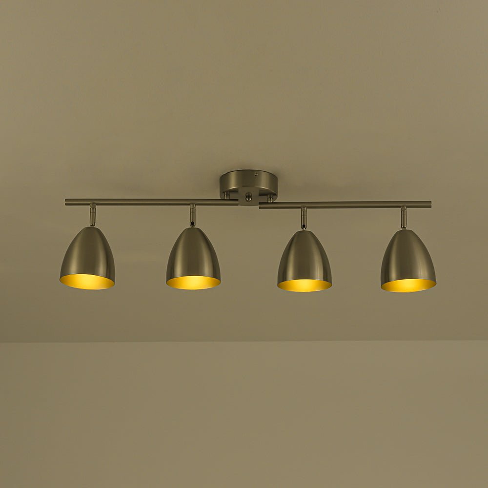 Sleek, practical, and contemporary, the 4-light bell tracklight semi-flush mount redefines everyday lighting with a designer’s touch. Inspired by tracklight systems, this fixture features adjustable lamp holders that allow you to direct light exactly where you need it—highlighting artwork, brightening a cozy reading nook, or illuminating a stylish kitchen island. Finished in elegant brushed nickel, it offers a refined industrial flair that seamlessly complements modern, transitional, or minimalist interiors. The four bell-shaped shades provide focused yet ambient illumination, making it ideal for kitchens, bedrooms, hallways, or photo display walls. With its clean lines and versatile functionality, this fixture blends efficiency with understated sophistication for any space.