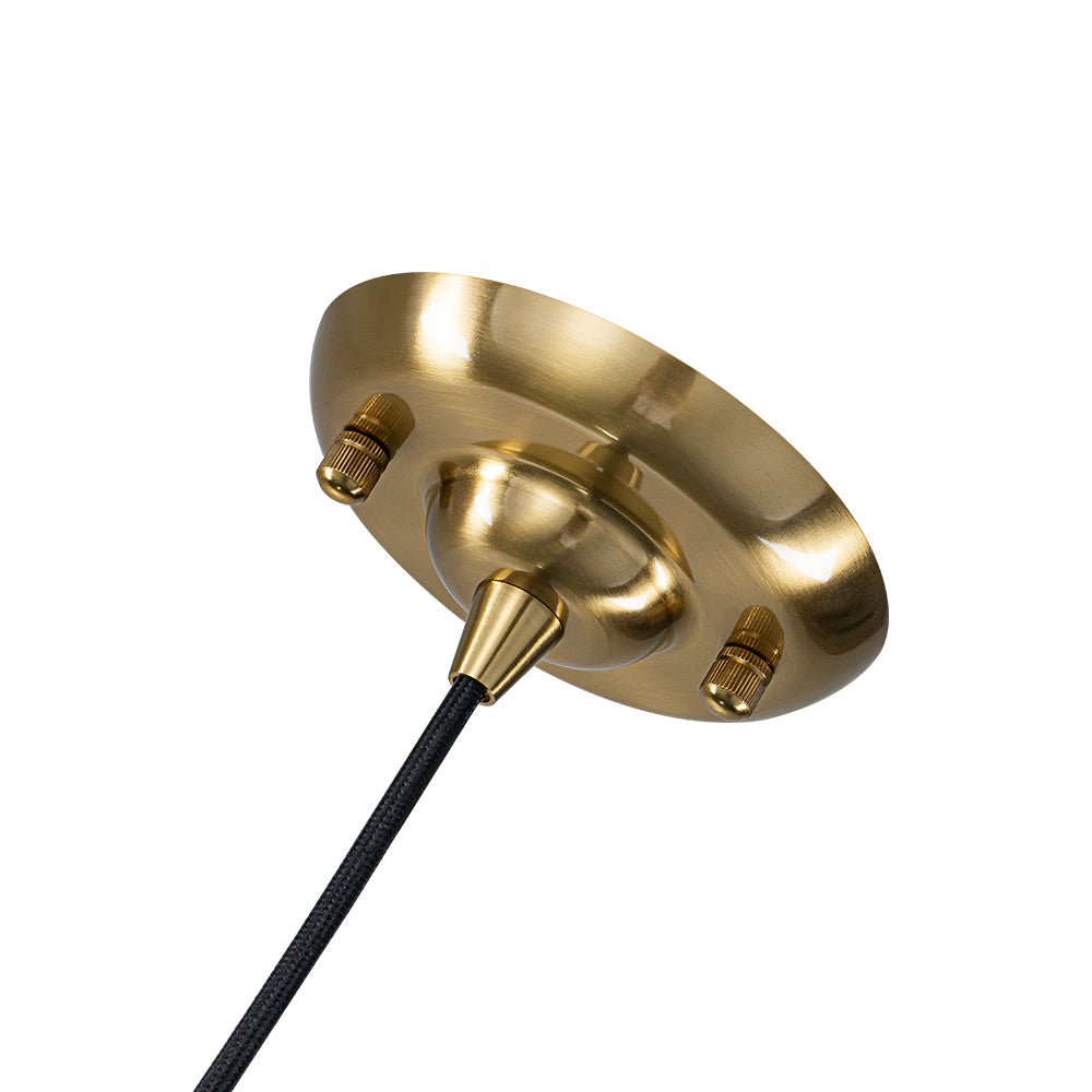 Gradient Glass Globes • Cable Adjustable • Leather Wrapped • Brushed Brass Finish • Metal Base • 6-Light Sockets • Metal Base • Assembly Required