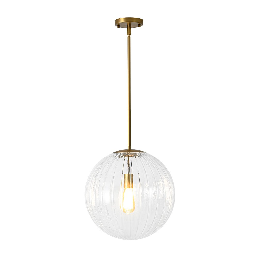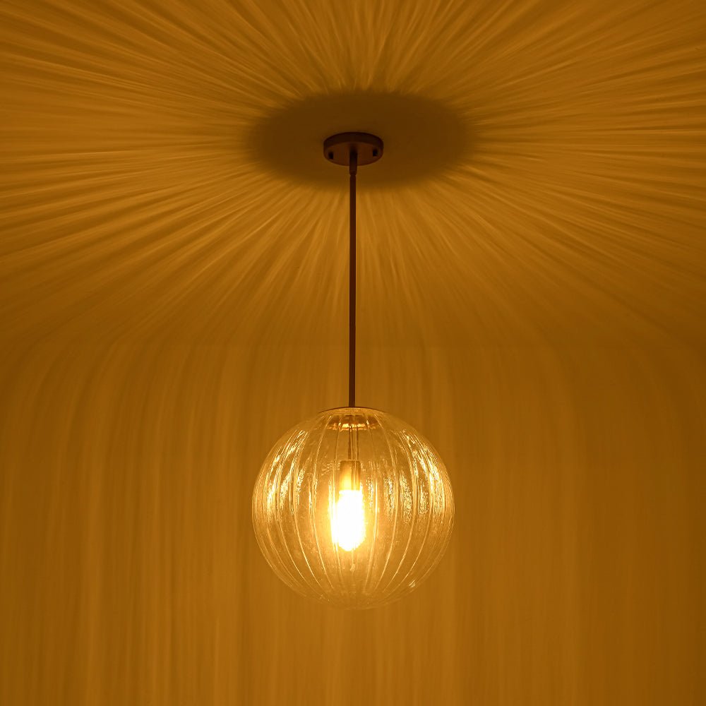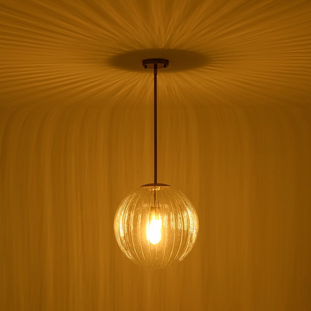 Minimalist Modern 1-Light Ribbed Clear Glass Globe Pendant