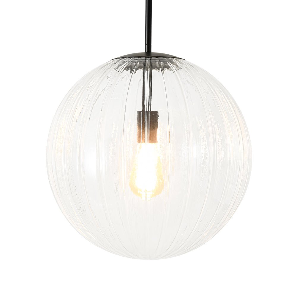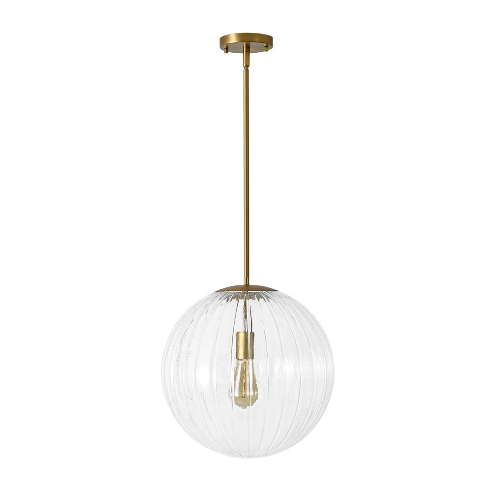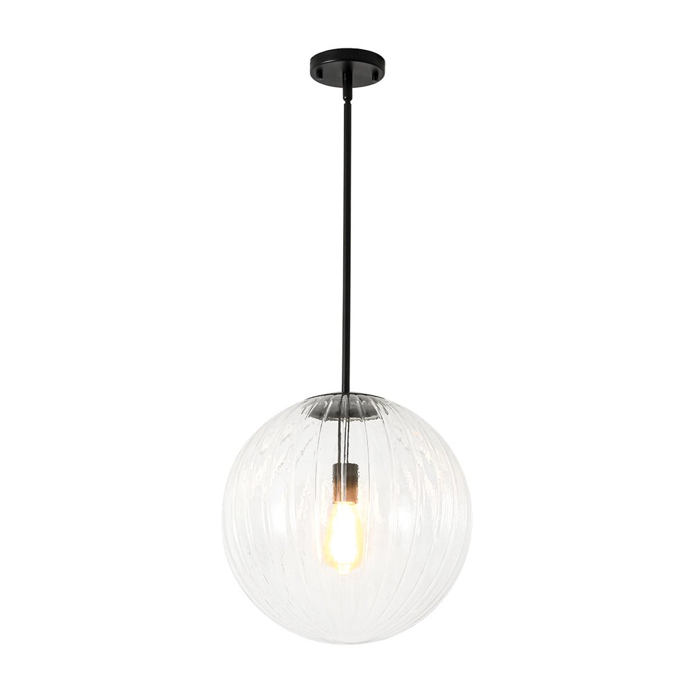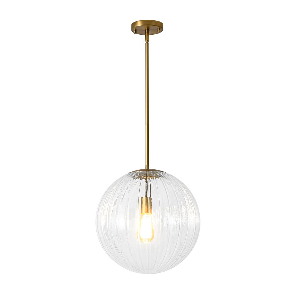 Minimalist Modern 1-Light Ribbed Clear Glass Globe Pendant