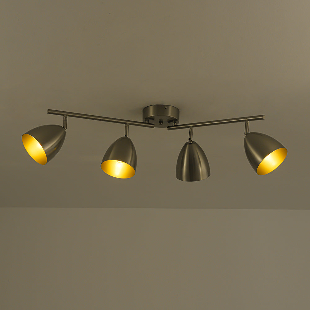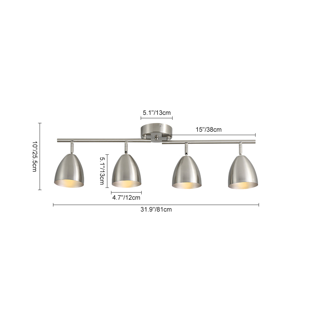 Sleek, practical, and contemporary, the 4-light bell tracklight semi-flush mount redefines everyday lighting with a designer’s touch. Inspired by tracklight systems, this fixture features adjustable lamp holders that allow you to direct light exactly where you need it—highlighting artwork, brightening a cozy reading nook, or illuminating a stylish kitchen island. Finished in elegant brushed nickel, it offers a refined industrial flair that seamlessly complements modern, transitional, or minimalist interiors. The four bell-shaped shades provide focused yet ambient illumination, making it ideal for kitchens, bedrooms, hallways, or photo display walls. With its clean lines and versatile functionality, this fixture blends efficiency with understated sophistication for any space.