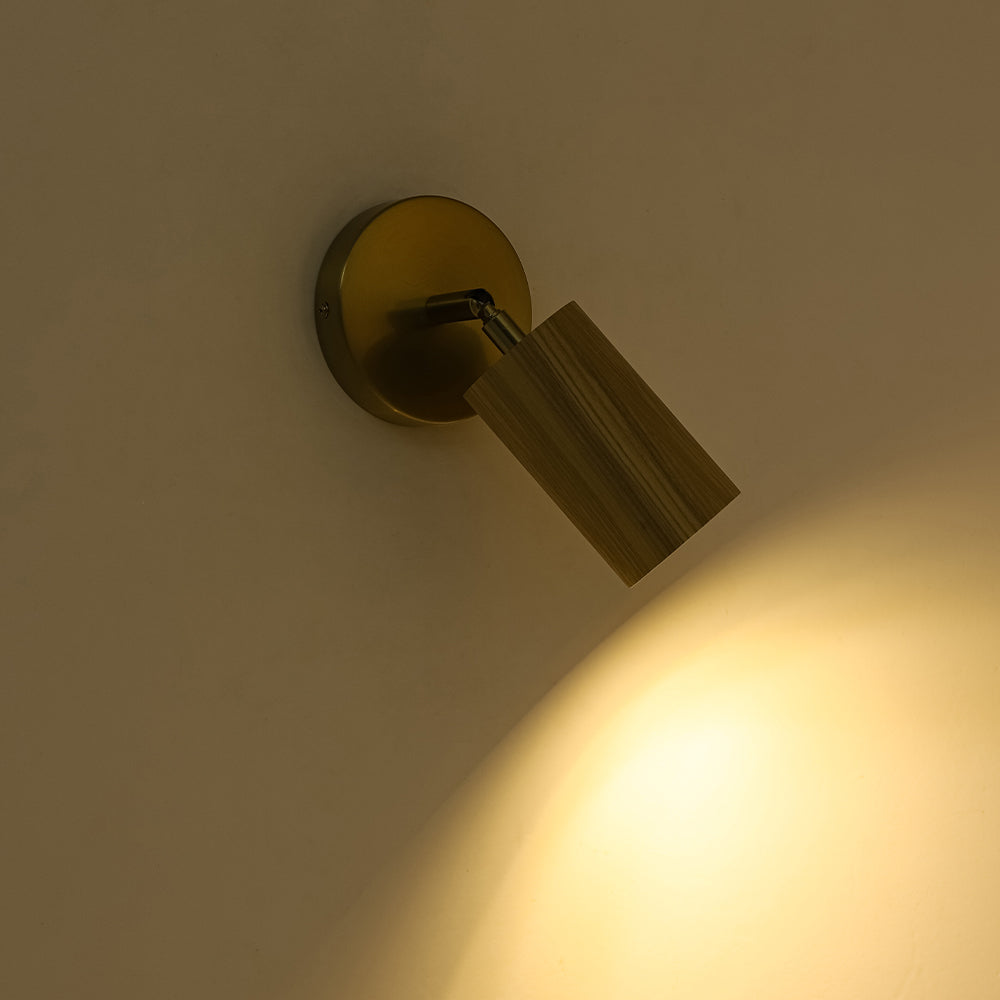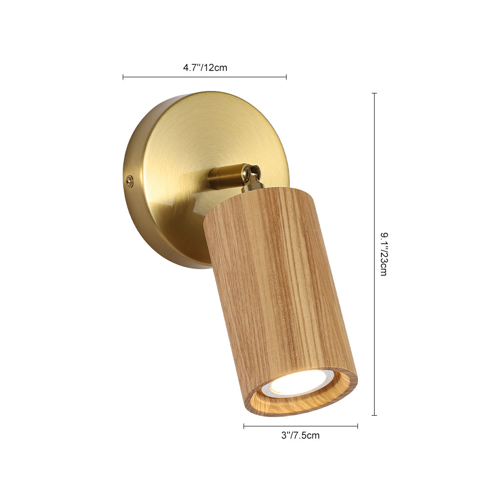 Adjustable 1-Light Spotlight Cylindrical Wood Wall Sconce