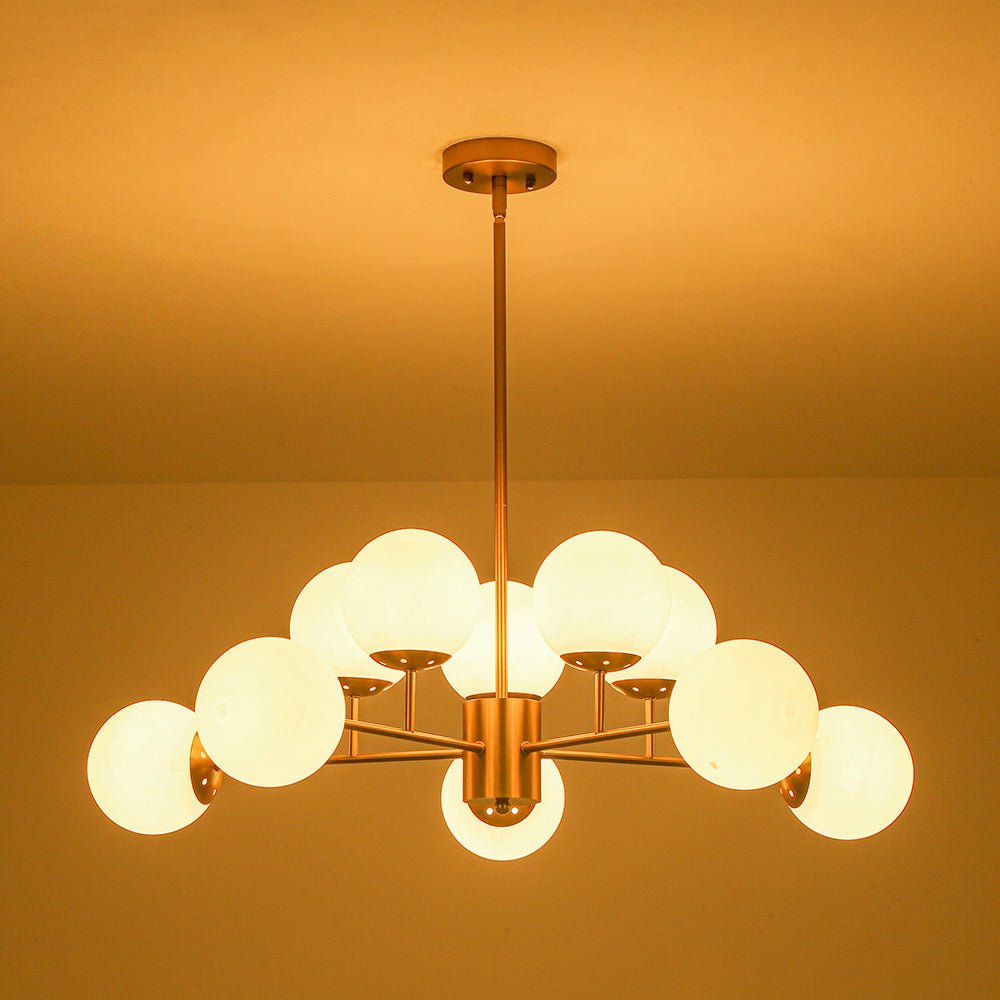 • 10-Light dual-mount Sputnik dimmable Frosted white glass globe chandelier