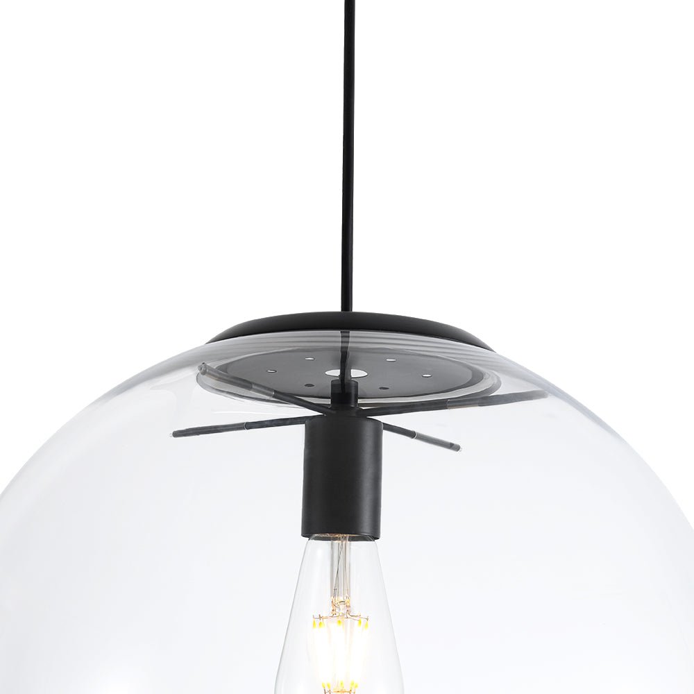 Single Globe • Transparent Glass • Adjustable Cord • Black Finish • Bulb Not Included • Easy Installation
